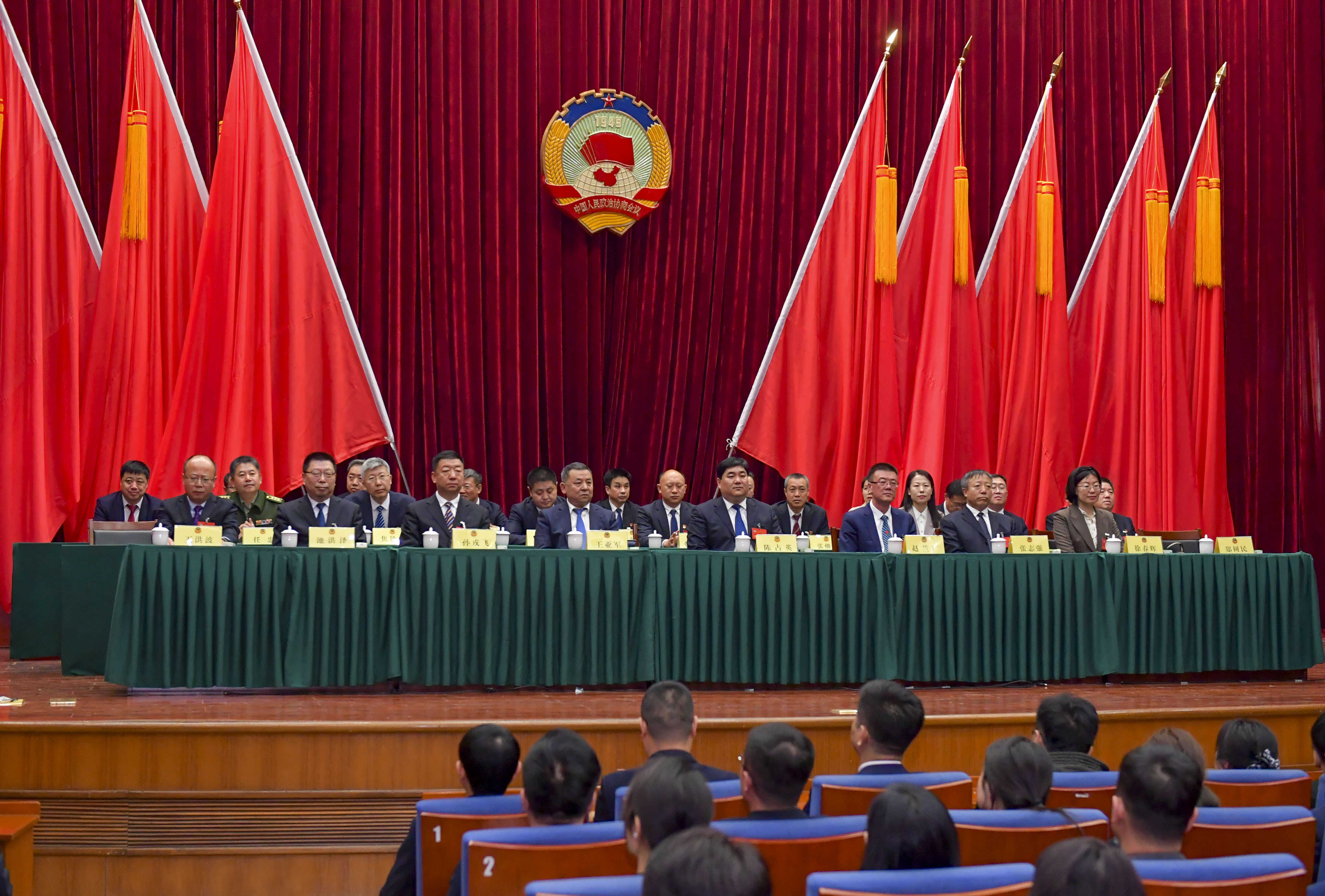 区政协党组书记、主席张志强,主席会议成员孙戎飞、徐春辉、池洪泽、王洪波及副主席候选人郑树民在主席台前排就座。区政协常委在主席台就座。